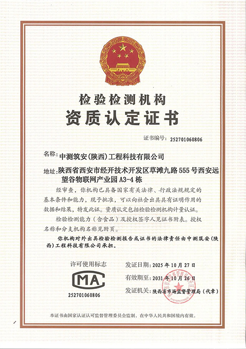 未来,我们将以此次资质证书更新为新的起点,始终秉持 “科学、公正、准确” 的服务理念,不断加强技术研发与人才培养,持续完善质量保证体系,严格按照 CMA 资质认定要求开展检验检测工作,为客户提供更加专业的房屋鉴定服务,为保障人民群众的居住安全、推动房屋鉴定行业的健康发展贡献更多力量!与大家携手共进,共创美好未来!